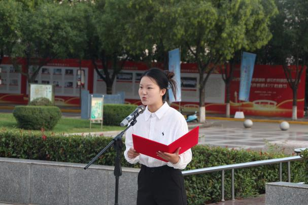 9月8日清晨,临潼校区骊山校园中心广场举行升国旗仪式,beet365红言宣讲团讲师李锦燕作国旗下主题宣讲。