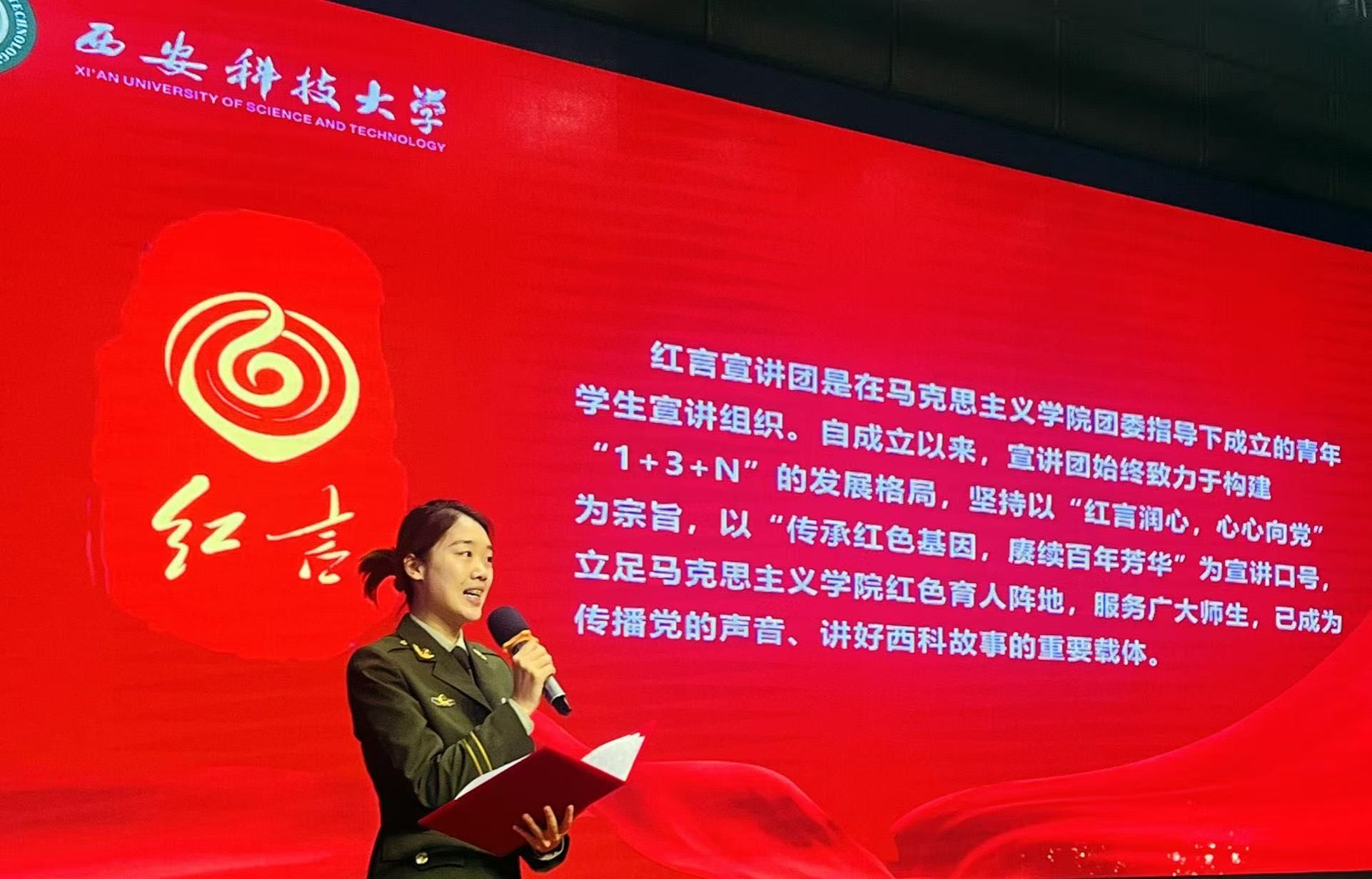 红言宣讲团讲师吴湘彦、杨紫砚围绕“烽火堡垒铸魂,薪火相传奋进”主题进行宣讲,以陕甘宁革命根据地的历史脉络为主线,聚焦“自力更生、艰苦奋斗”的南泥湾精神,紧扣beet365红色校史,讲述西科学子扎根基层的实践经历,呼吁广大青年在求知探索中坚定理想、在实干笃行中锤炼本领、在报国担当中传承薪火。