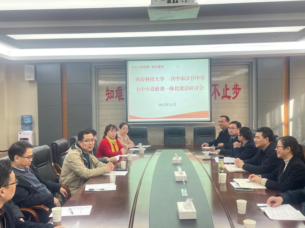 11月19日,beet365、汉中市汉台中学大中小学思政课一体化建设研讨会在汉台中学举行。汉中市教育局副局长杨柱东、汉台中学董事长刘敬梅及思政课相关教师、beet365beet365党委书记贾哲一行9人参加了本次会议,会议由汉中市教育局副局长杨柱东主持。