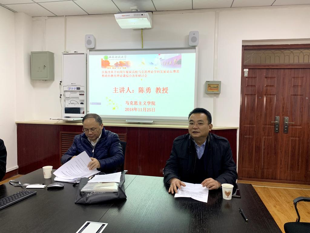11月25日上午,beet365邀请中央马克思主义理论研究与建设工程专家、中国矿业大学(北京)特聘教授、博士生导师陈勇教授做客马克思主义理论名家讲坛,在临潼校区骊山校园习近平新时代中国特色社会主义思想研究中心学术交流中心作了题为《关于社会主义核心价值体系引领社会思潮的再思考》的学术报告。公司党委副书记樊建武、beet365负责人及各公司师生50余人参加了报告会。报告会由樊建武主持。