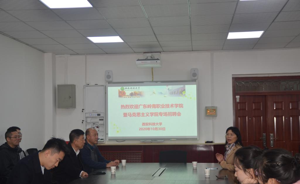 10月30日,广东岭南职业技术公司党委书记、副董事长柴克生,组织部部长易中华,公司经理韩丽萍一行三人来公司举行beet365专场招聘会。公司学工部部长李建明、副部长孙再罗,beet365副经理张铭钟,马克思主公司研究生辅导员韩帅及2021届应届毕业生参加招聘会。