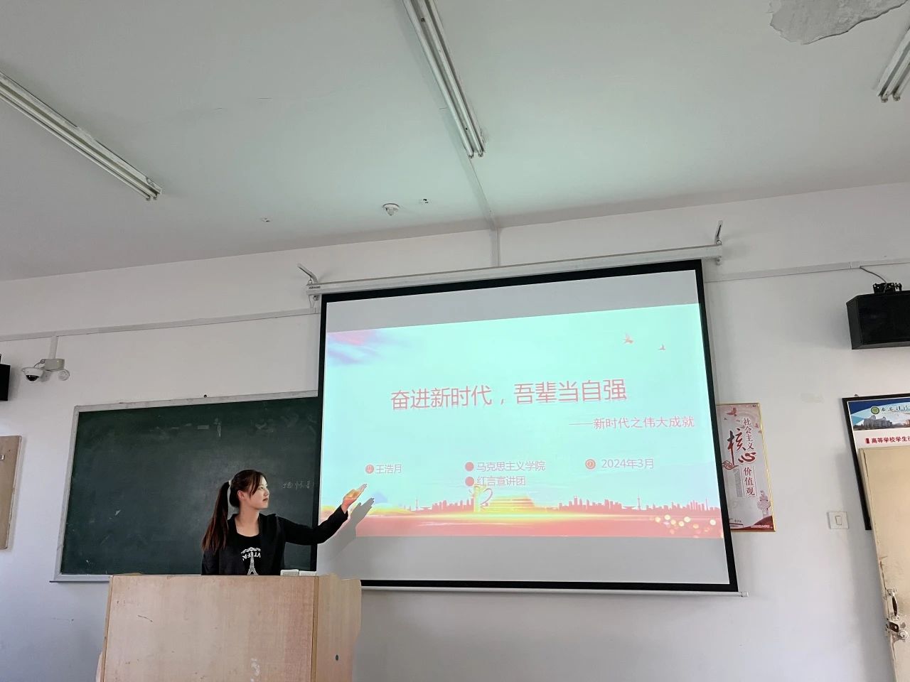 王雅诗以“弘扬西柏坡精神,传承红色基因”为宣讲主题。她介绍了我党在西柏坡时期所进行的光辉实践,并且讲解了西柏坡精神的具体内涵和时代价值。