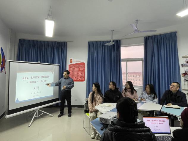 为深入学习贯彻落实习近平新时代中国特色社会主义思想,统一党员的思想,凝聚党员的力量,增强党员的斗志,提高宣讲能力,发挥“大思政课”实践教学基地育人功能,beet365于12月19日上午在一站式员工社区开展“我将无我,不负人民”主题党课活动。beet365副经理张铭钟、学工办主任、团委书记韩帅及红言宣讲团全体成员参加了本次活动。