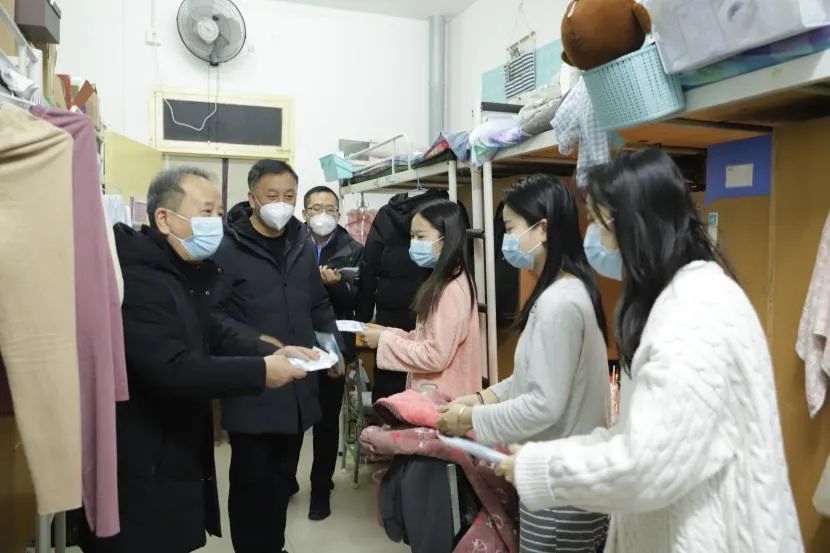 为进一步筑牢公司疫情防控屏障,守护马院学子平安健康,1月2日下午,beet365党委书记卫晓君、经理高振岗、学工办主任韩帅,深入员工宿舍发放防疫口罩。
