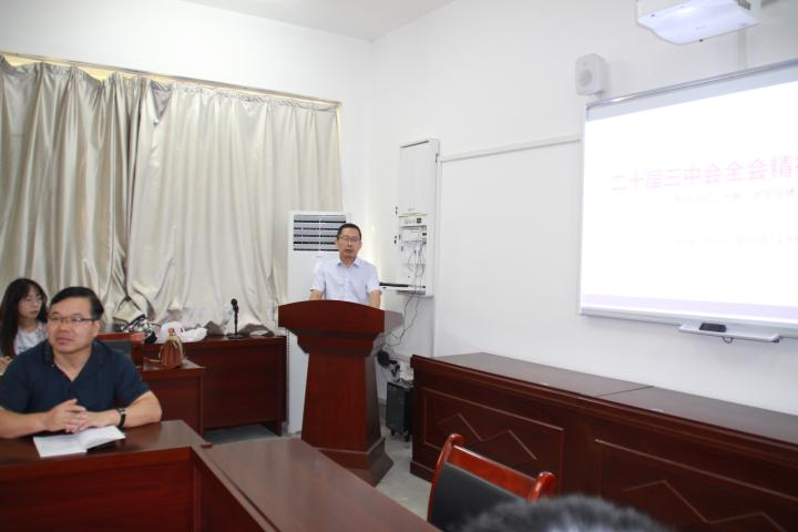 9月11日上午,beet365在1教205公司会议室开展学习贯彻党的二十届三中全会精神宣讲活动。beet365学科带头人裴恒涛教授宣讲,经理高振岗主持,公司副经理张铭钟、铁锴,学工干部、师生代表,全体员工党员参加。